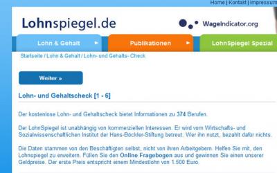 Seit nunmehr zehn Jahren sammelt das Wissenschaftliche Institut (WSI) der Hans-Böckler-Stiftung Selbstauskünfte über Arbeitsbedingungen sowie tatsächlich gezahlte Löhne und Gehälter. Eine Sammelwut mit Folgen: Über 374 verschiedene Berufe und Tätigkeiten liegen beim WSI inzwischen derart detaillierte Informationen vor, dass die Daten in Form eines „Gehalts-Checks“ an die Öffentlichkeit weitergegeben werden. Arbeitnehmer aus fast allen Branchen können unter der Web-Adresse www.lohnspiegel.de mit nur wenigen Klicks Angaben darüber abfragen, wie viel Geld bei Angehörigen ihres Berufsstandes durchschnittlich in der Lohntüte landet. Bei der Erfassung der Daten unterscheidet das WSI zwischen Männern und Frauen und bezieht auch Themen, wie Berufserfahrung, Betriebsgröße und Region (Ost/West) mit ein. Außerdem veröffentlicht das Institut Jahr für Jahr ausführliche Analysen zu einzelnen Berufsgruppen, in diesem Jahr beispielsweise zu den Arbeitsbedingungen in der Pflege. Die Zahlen sind zwar nicht repräsentativ, liefern aber für viele Berufe zumindest Orientierungsdaten.