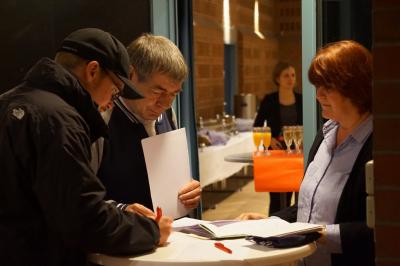 Sorgten für einen reibungslosen Ablauf des Neujahrsempfangs: Branchensekretär Jörn Förster (Mitte) und Petra Czirniok (rechts).