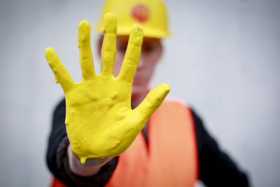Zeigen Fremdenfeinden die "gelbe Hand": Azubis mit gesellschaftspolitischem Engagement (Foto: IG BAU).