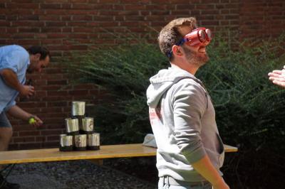 Die Spezialbrille des ACD machte es möglich: Mit "betrunkenen Augen" warf Lukas Rittinghaus von der jungenBAU Hamburg auf Dosen - recht erfolglos übrigens.