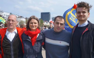 Für die Gewerkschaftsjugend sprach Simon Küppers und gab ein Bekenntnis zu Europa ab: „Es braucht Bündnisse wie die Europäische Union. Als Institution wirtschaftlicher, sozialer und politischer Zusammenarbeit ist sie nicht mehr wegzudenken. Bei aller berechtigten Kritik bietet sie eben doch auch Wege die Arbeits-, Sozial-, und Lebensstandards in den Mitgliedsstaaten anzugleichen. Denn sie ist ein Garant langfristiger und verbindlicher Kooperation auf Basis gemeinsamer Ideale. Und nur so ist internationale Zusammenarbeit überhaupt denkbar.“