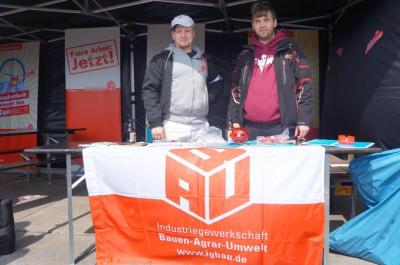 Ein anderer thematischer Schwerpunkt der Mai-Kundgebung war die Rentenpolitik. Als Gastredner zog René Schindler von der Produktionsgewerkschaft PRO-GE aus Österreich einen Vergleich zwischen Deutschland und seinem Heimatland. Sein Fazit: „Dass die früheren deutschen Regierungen die Renten deutlich unter jenes Niveau gesenkt haben, das in Österreich bezahlt wird, ist ein Skandal und durch nichts zu erklären oder zu rechtfertigen.