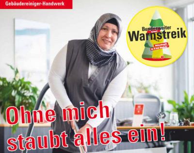 Täglich werden Schulen, Büros, Industriebetriebe oder Einkaufszentren von uns GebäudereinigerInnen gereinigt. Auch wir wollen uns einmal im Jahr etwas besonderes leisten können und ein Weihnachtsgeld erhalten - so wie es in den meisten anderen Branchen Normaliltät ist. Am Montag treten dafür bundesweit Belegschaften in den Warnstreik, um unsere Forderungen zu unterstreichen.