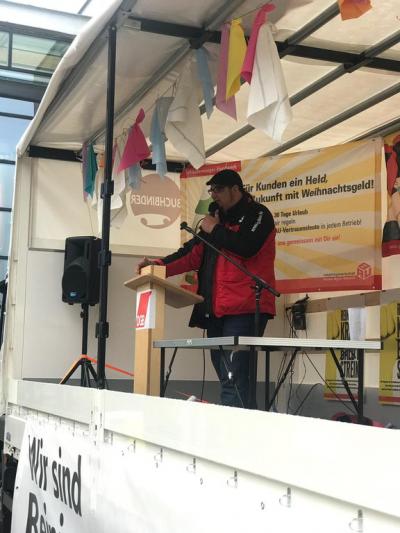 Unter großem Applaus kündigte André Grundmann, Regionalleiter der IG BAU Nord, für die kommenden Wochen weitere Streikaktionen an, sollten die Arbeitgeber nicht über ein Weihnachtsgeld für die Reinigungsbranche verhandeln. Ihr bisheriges Verhalten sei ein "Schlag ins Gesicht aller hart arbeitenden Beschäftigten in der Gebäudereinigungsbranche!". Die Arbeitgeber riskierten mit dieser Provokation eine massive Verschärfung des Tarifkonflikts.