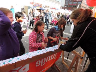 Bei der Aktion "Reinhauen für..." konnten Jung und Alt ihr wünsche für das Leben im Beruf, oder Wünsche für die folgende Generation auf kleine "Reinhauen für..."-Karten schreiben und in den bereitgestellten Aktionsbalken REINHAUEN. Eine sehr gelungene Aktion, die bei allen seh gut ankam.