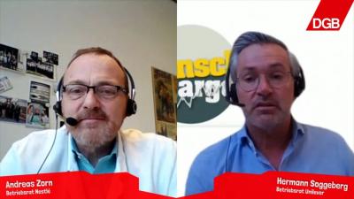 Der DGB präsentiert statt der gewohnten Demonstration und Kundgebung in diesem Jahr auf der Homepage hamburg.dgb.de eine Sendung aus dem Gewerkschaftshaus in Hamburg. Mit dabei sind auch die Betriebsräte Hermann Soggeberg von Unilever und Andreas Zorn bei Nestlé. Sie stellen die Kampagne "Mensch vor Marge" vor, die sie gemeinsam mit ihrer Gewerkschaft Nahrung-Genuss-Gaststätten (NGG) gestartete haben. Es geht um zu großes Profidenken in der Lebensmittelindustrie.