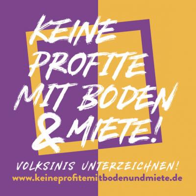 Zur ausführlichen Begründung der Volksinitiativen geht es hier, zu den InitiatorInnen hier. Wer die Aktion unterstützen möchte, findet unter dieser Adresse alle nötigen Informationen: https://keineprofitemitbodenundmiete.de/unterstuetzen/